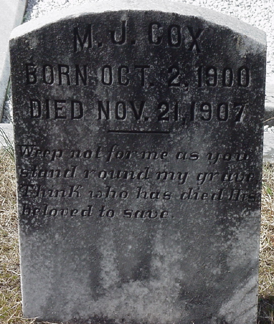 M. J. Cox b. 02 Oct 1900 d. 21 Nov 1907 |