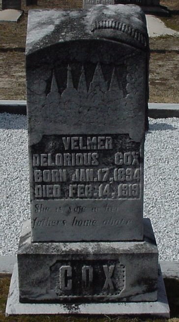 Velmer Delorious Cox b. 17 Jan 1894 d. 14 Feb 1919 |