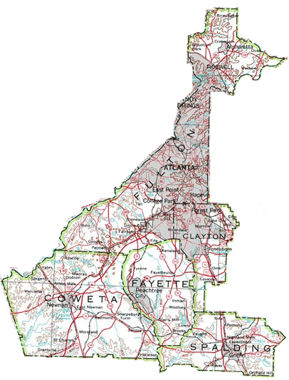 MODERN FAYETTE COUNTY AND SURROUNDING COUNTIES MAP