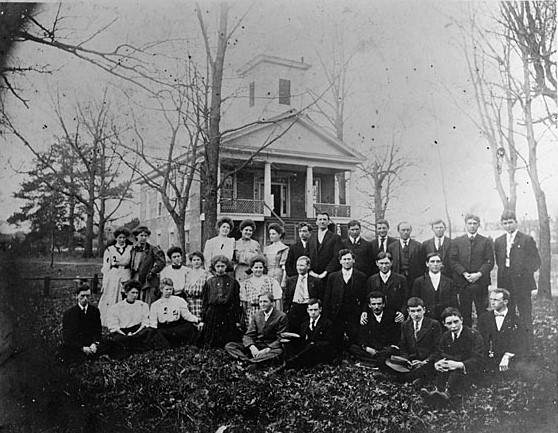 Academy with class on the lawn, Cave Spring ca 1910 Courtesy of Virtual Vault |