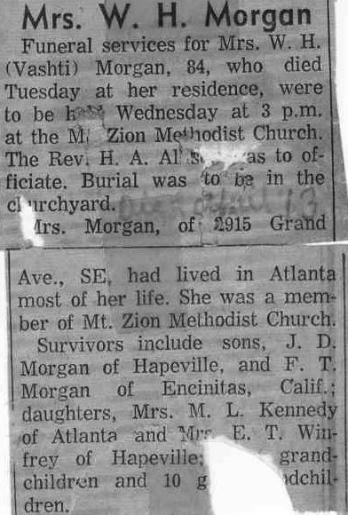 Morgan, great grandson of Thadius &Evaline) Obit