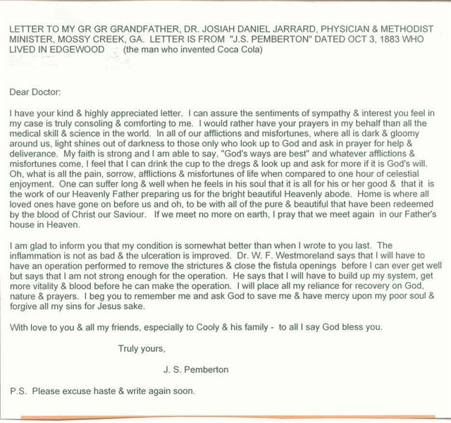 Family Letters Thanks to Diane Ethridge for the below 1883 letter: