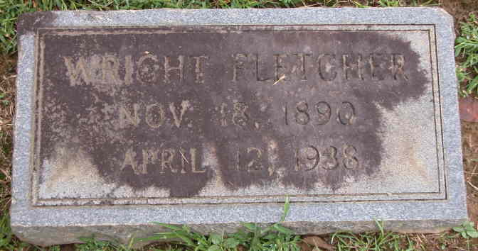 Wright Fletcher November 18, 1890 April 12, 1938 (this tombstone is in the Kiker plot) |