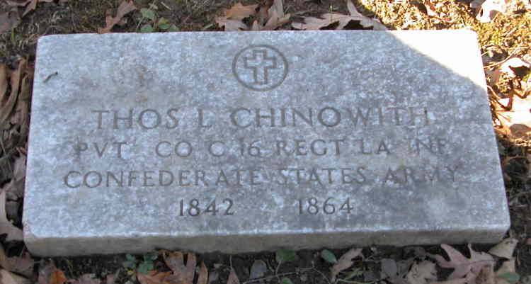 Thos L. Chinowith PVT Co C 16 Regt LA Inf. Confederate States Army 1842 - 1864 |