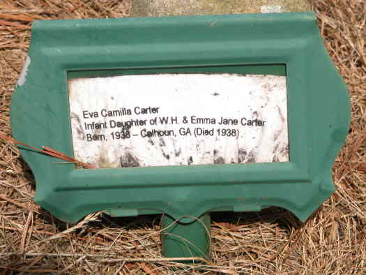 Eva Camilla Carter Infant daughter of W. H. & Emma Jane Carter Born, 1938 - Calhoun, GA (Died 1938)