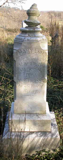 Mary Lou only daughter of J. W. and R. W. Jackson. Died April 15, 1875. In 26, Year of Her Age.