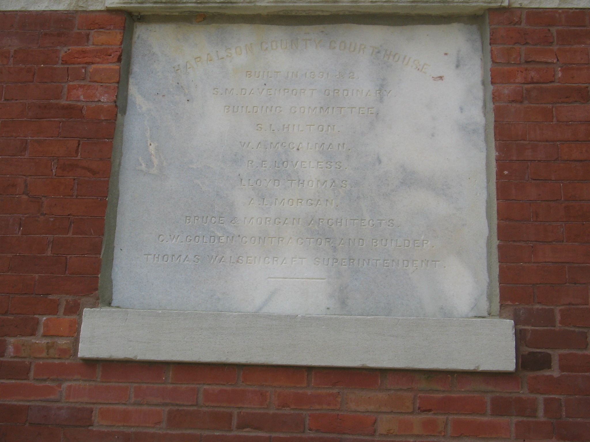 Plaque on Haralson County Courthouse photo by Bobby Brooks |
