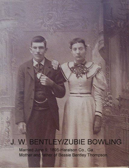 James "Will" Bentley and Zudie Bowling, married 6-9-1905, Haralson Co, Submitted by W M Thompson, great grandson. |