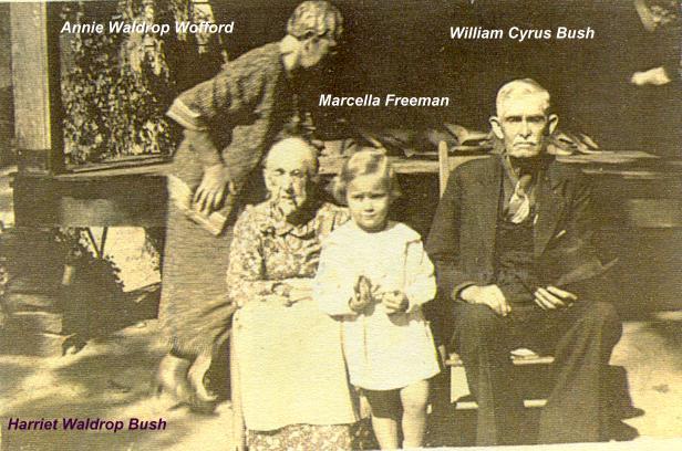 Harriet Waldrop Bush; 10-15-1843 to 8-24-1937; buried Waco. Daughter of Thomas Greer Waldrop and Sarah A Tommie. Married Abraham P Bush, submitted by Michael Tucker |