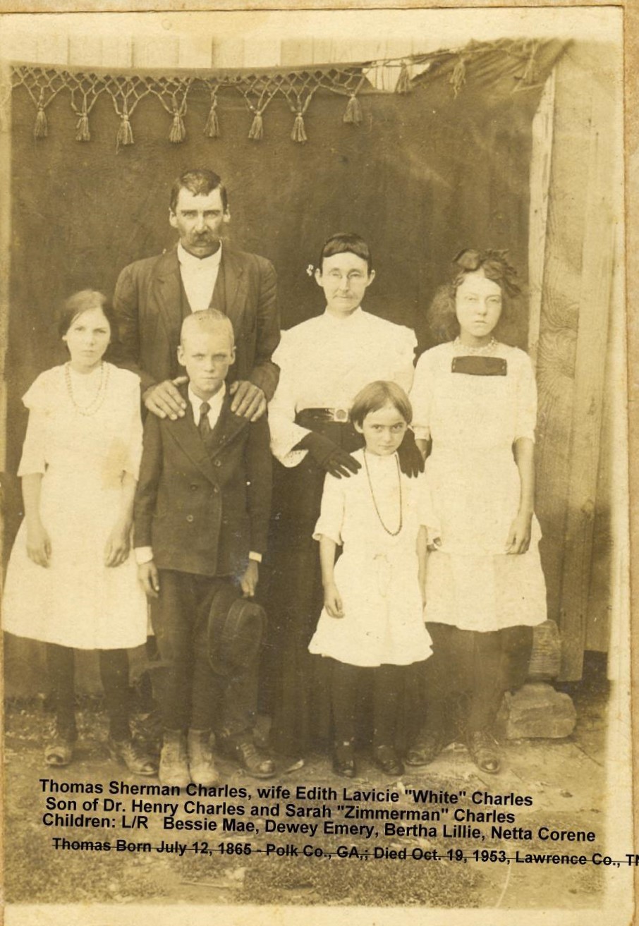 Thomas Sherman Charles, Edith Lavicie White Charles, Bessie Mae, Dewey Emery, Bertha Lillie, Netta Corene, ca 1917-1922. Submitted by William Latham |