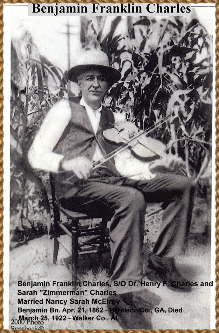 Benjamin Franklin Charles 4-21-1862, Haralson Co GA to 3-25-1922, Walker Co AL, Married Nancy Sarah McElroy. Contributed by William Latham Jr |