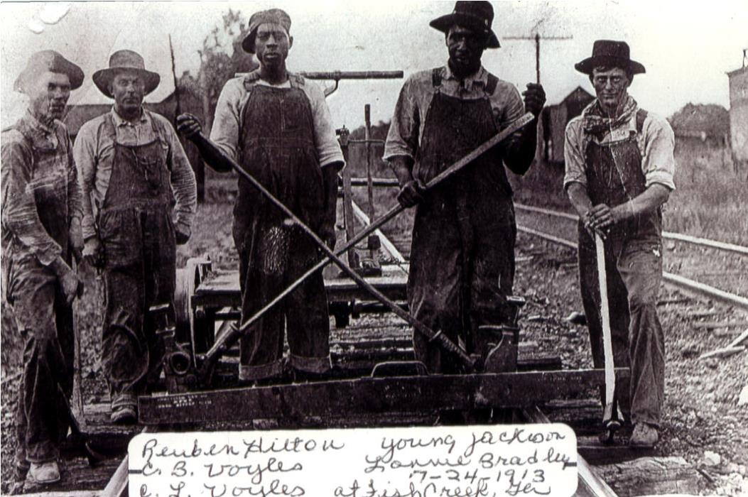 Reuben Hilton, C B Voyles, R I Voyles, Young Jackson, Lannie Bradley, 24 July 1913, Fishcreek GA, Submitted by Ronald Hilton