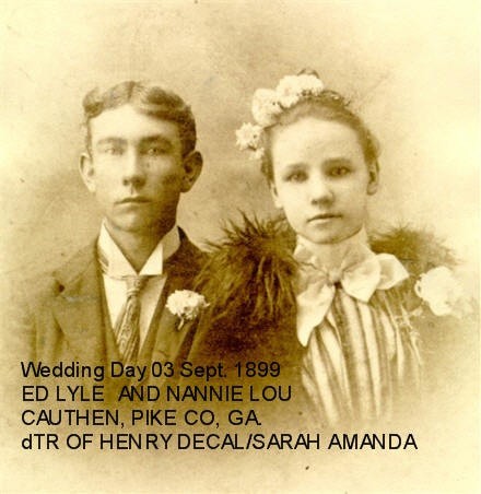 Stephen Eddie Lyle and Nannie Lou Cathen, wedding 1899. Submitted by E Robertson |