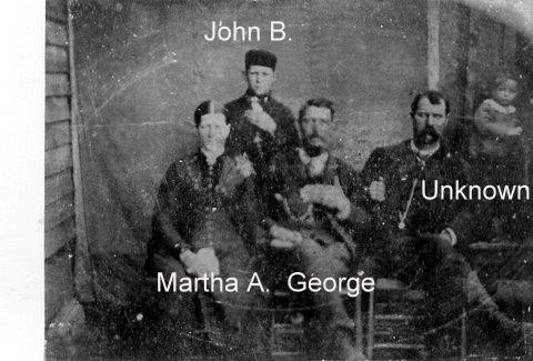 Martha A and George W Sanford. Son John standing. unknown man on right. Submitted by Reba Schafer |