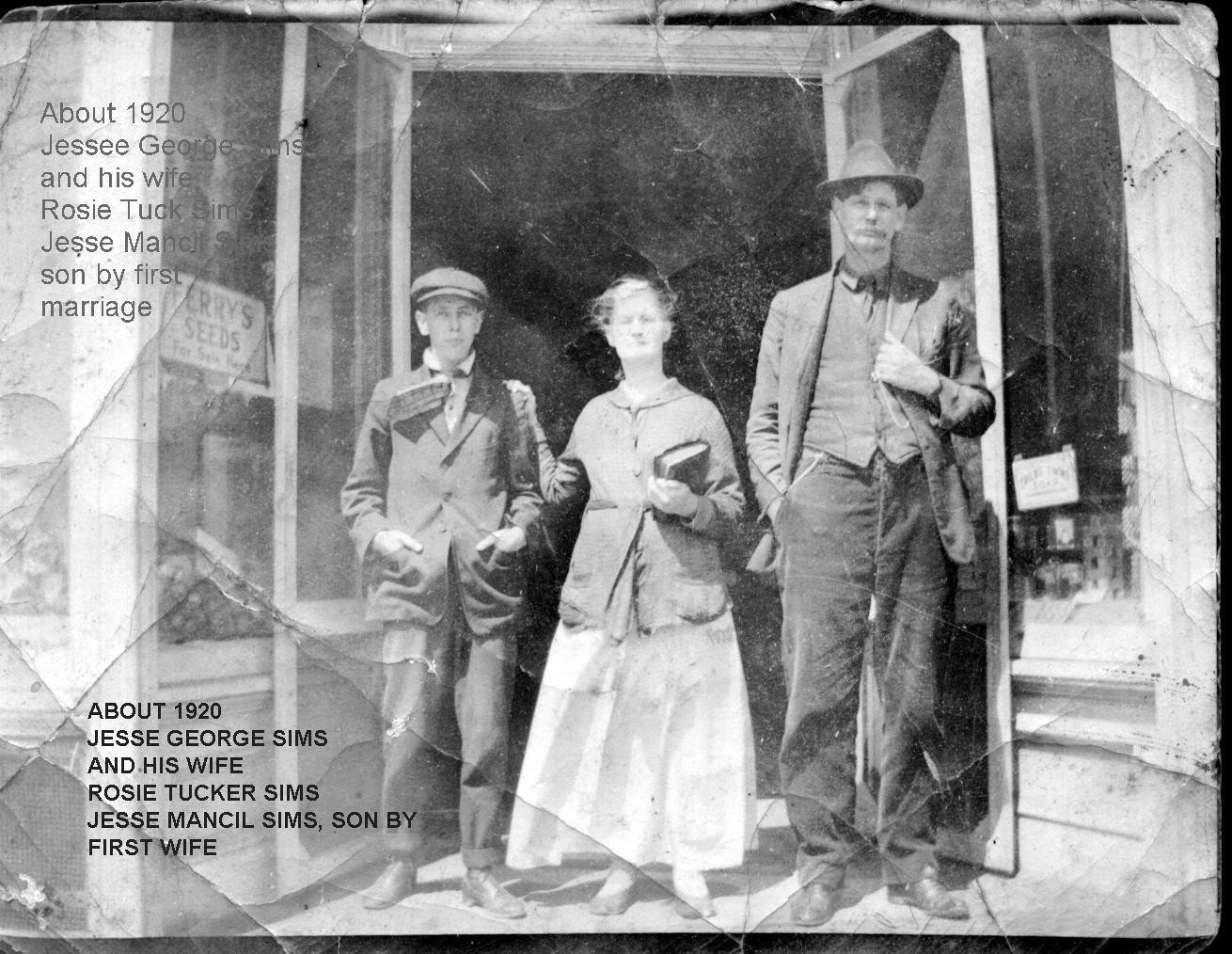 Jesse George Sims and his wife Rosie Tucker Sims and Jesse Mancil Sims (son from first wife) |
