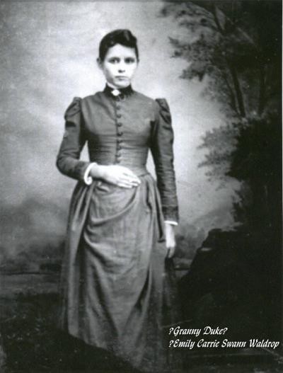May be Emily Carrie Swann, born 1856, died 1941. Wife of Henry Clay Waldrop, daughter of Wm M Swann and Delila Brown. Submitted by Michael Tucker. |