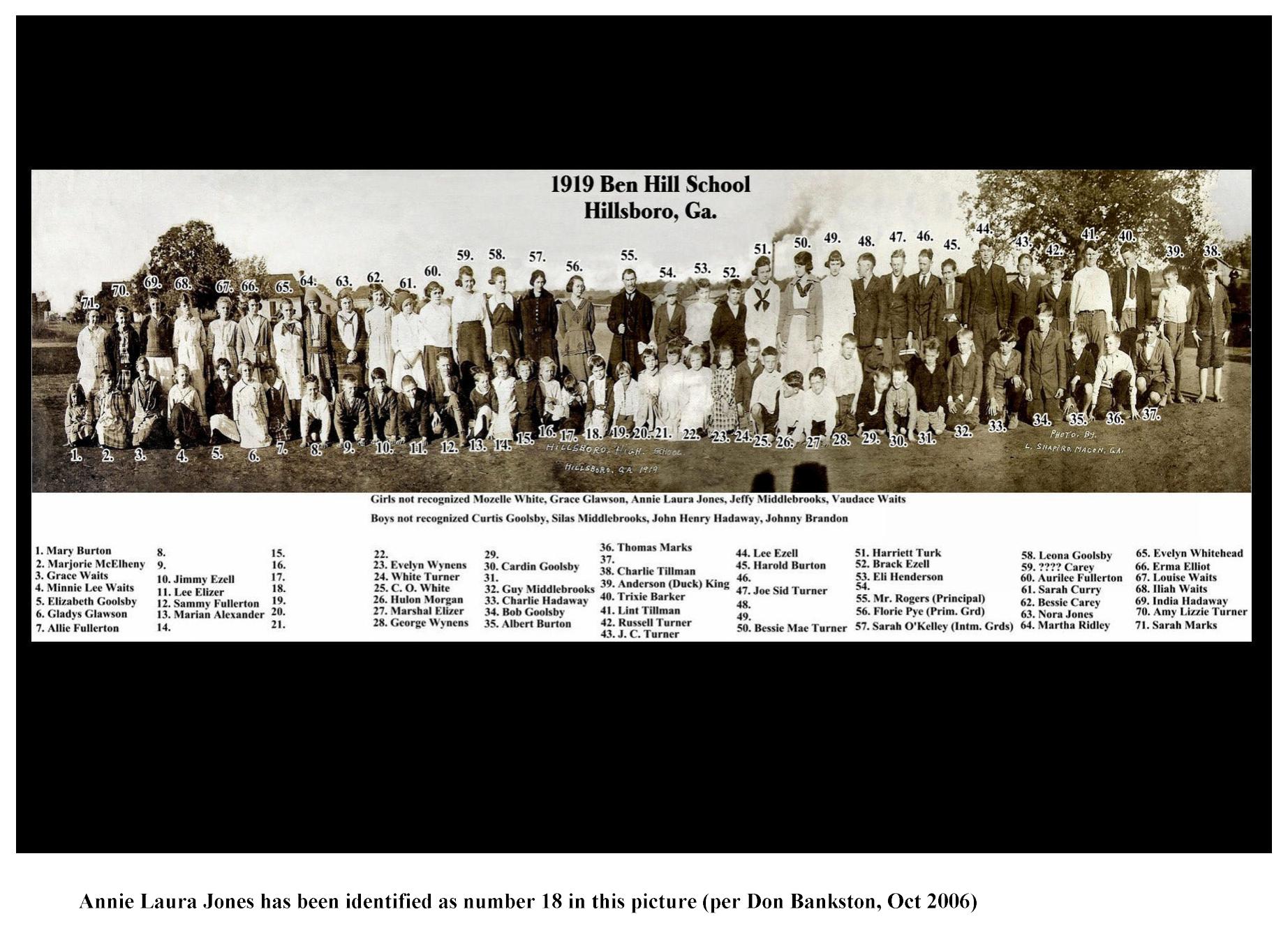 The following are pictures of students of the Ben Hill School or Hillsboro School for the year indicated: