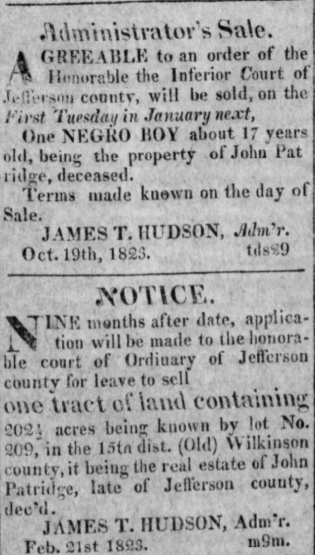 Wilkinson county, it being the real estate of John Patridge, late of Jefferson