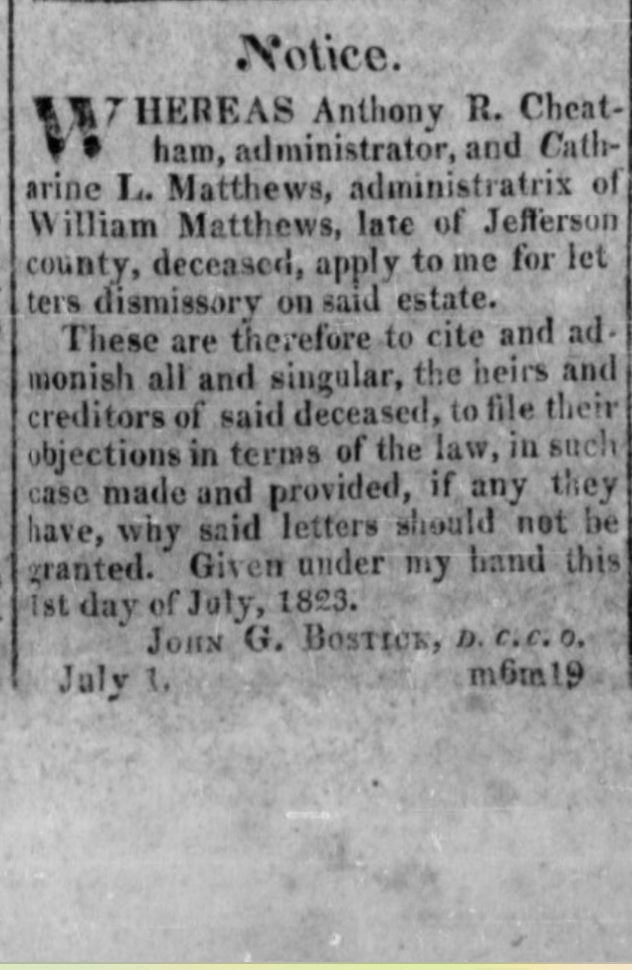 Matthews, administratrix of William Matthews, late of Jefferson county,