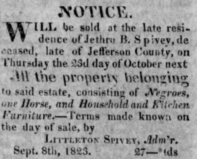 NOTICE. WILL be sold at the late residence of Jethro B. Spivey, de ceased,