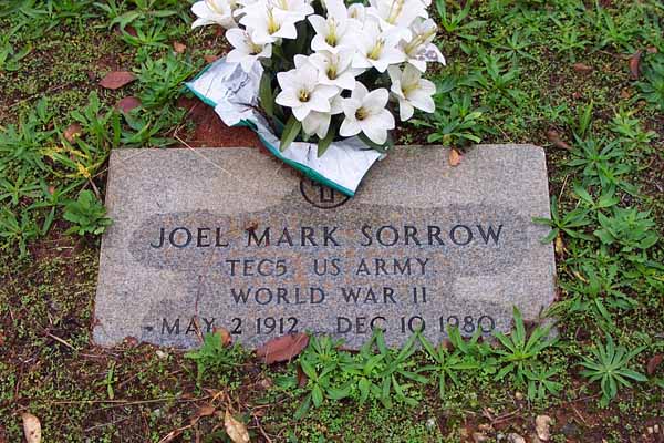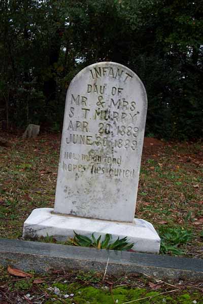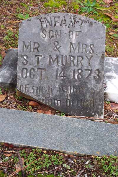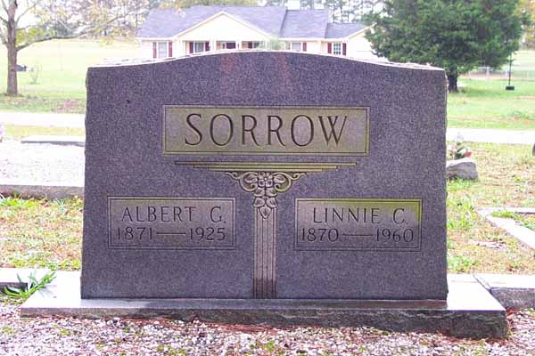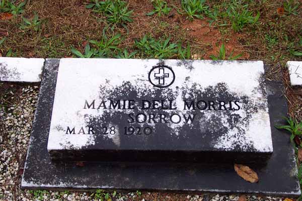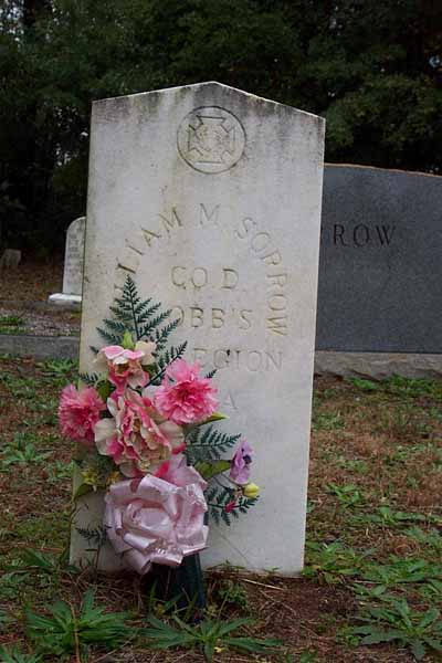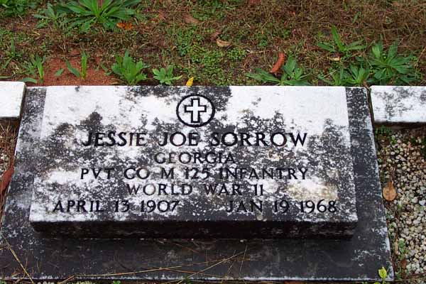 Sorrow, Joel Mark, May 2 1912, Dec 10 1980, Tec5 US Army WWII Sorrow, Jessie Joe, Apr 13 1907, Jan 19 1968, Ga Pvt Co M 125 Inf WWII, matching stone w/Mamie D. Sorrow, Mamie Dell Morris, Mar 28 1920, blank, matching stone w/Jessie J. Bridges, William R., 1936, 196?, Bridges FHM Bridges, Daniel O. (Mr.), 1885, 1963, Bridges FHM Bridges, Leona S., 1895, 1972, Bridges FHM Edwards, Wyatt H., Jul 24 1929, Apr 20 1930 Edwards, Nellie S., Aug 22 1910, Jan 7 1997 Mann, Infant Daughter, no dates Mann, Dena C., Aug 8 1892, May 20 1974, shared stone w/Eugene Mann, Eugene, May 11 1883, Mar 10 1937, shared stone w/Dena C. Sorrow, Grover Albert, Nov 1 1890, Feb 16 1978 Sorrow, Henry Ellis, May 15 1900, May 11 1977 Sorrow, Albert G., 1871, 1925, shared stone w/Linnie C. Sorrow, Linnie C., 1870, 1960, shared stone w/Albert G. Crumley, Annie Sorrow, Jul 10 1897, Jan 26 1995 Crumley, James F., Mar 7 1888, Sep 16 1951, Ga Pvt 121 Inf 31 Div WWI Nelms, Junior, Aug 30 1939, Jun 30 1940 Sorrow, William M., no dates, Co D Cobb's Legion CSA Sorrow, Benjamin F., Feb 22 1866, Mar 18 1928, shared stone w/N. Elizabeth Sorrow, N. Elizabeth, Nov 11 1873, Feb 26 1926, shared stone w/Benjamin F. Murry, Infant Son, Oct 14 1873, Oct 14 1873, s/o Mr. & Mrs. S.T. Murry, Infant Daughter, Apr 20 1889, Jun 30 1889, d/o Mr. & Mrs. S.T. Murray, J.M. no dates, 2 Ga Cav CSA Nelms, W. Howard, Mar 7 1898, May 2 1960, shared stone w/Osie S. Nelms, Osie S., Feb 26 1908, Jan 27 1985, shared stone w/W. Howard Nelms, Clarence H., Dec 16 1955, Aug 9 1970 Nelms, Curtis H., Aug 28 1927, Mar 5 2000