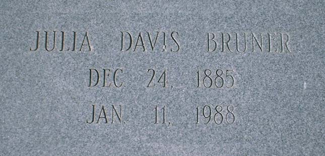 Bruner, Julia Davis b. December 24, 1885 d. January 11, 1998 |