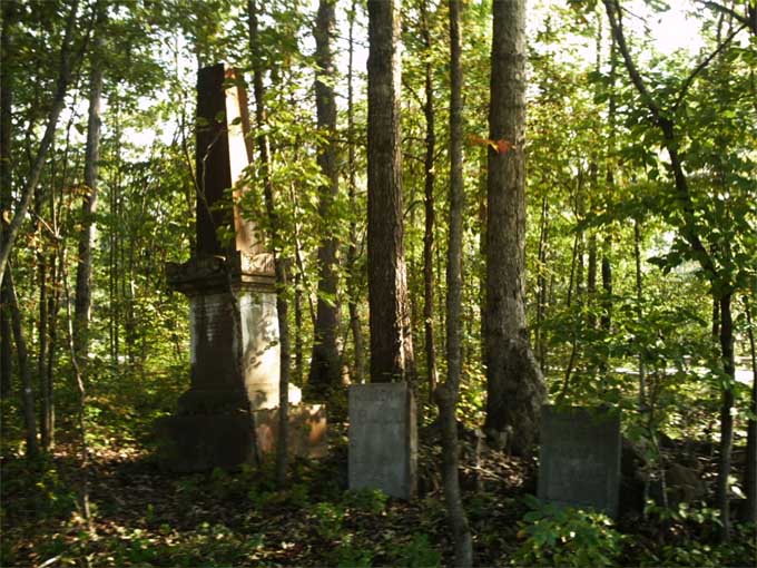 seen from the road about 100 feet into the woods. The cemetery over looks the