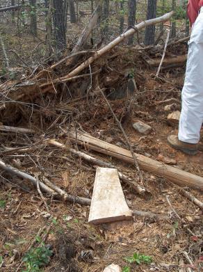 Mr. Turner also located another abandoned cemetery on Johnstonville Rd., back in the woods off a log road. About 100 yards from the cemetery is an old home place. It is unknown as to who is buried there.
