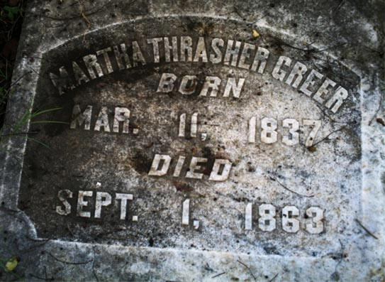 Dec. 14, 1896 Martha Thrasher Greer March 11, 1837 Sept. 1, 1863
