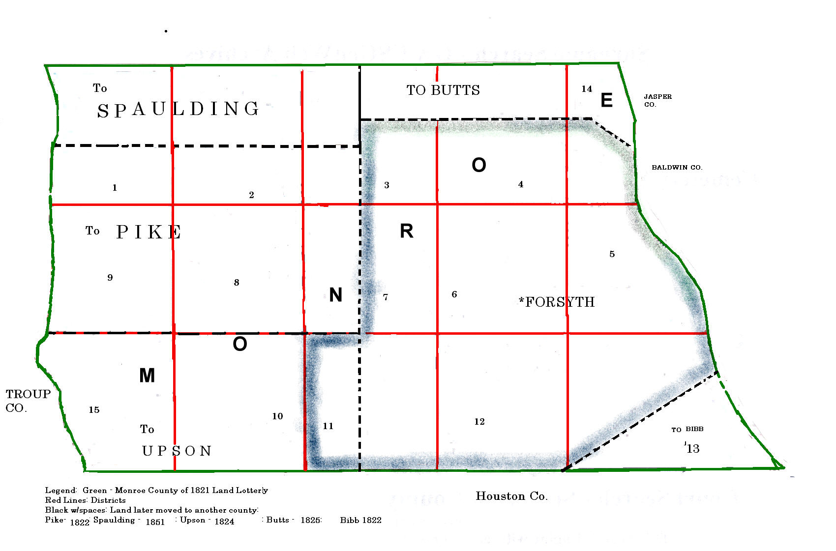 County covered all of present day Monroe County, Pike County, Lamar County and parts