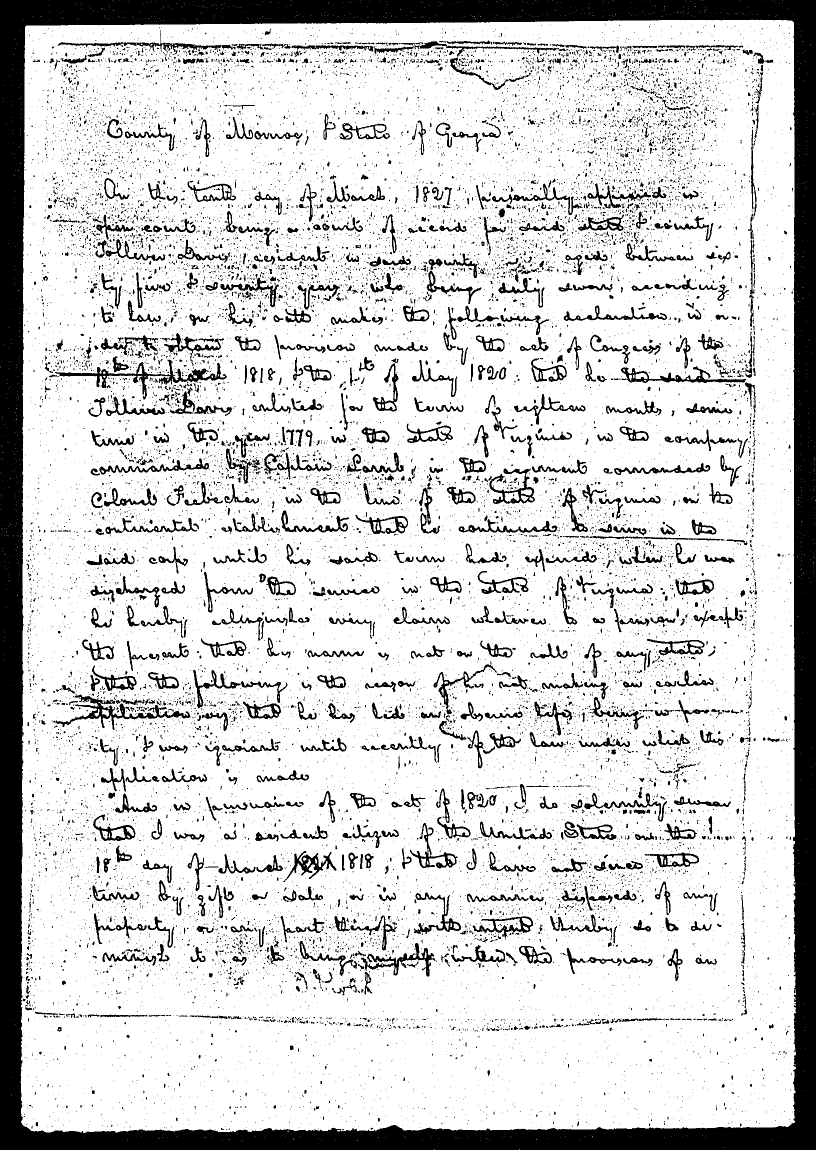 services that he served in the Georgia Militia as a private, but does not recollect