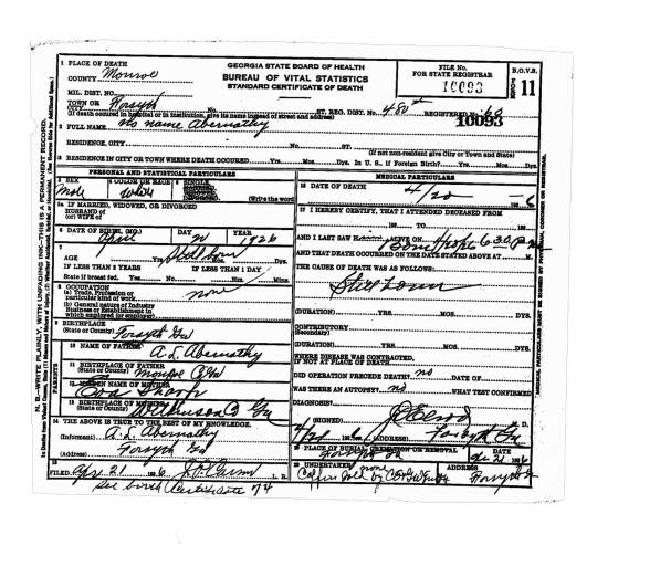 BAGGARLY JULIA W APR. 10 1923 11914-E BAGGERLY DAVID B. NOV. 15 1931 28661 BAGGERLY DOROTHY J OCT. 16 1936 28671 BAGGERLY HENRY G FEB. 24 1926 4485-H BAGGERLY IDA F WF 84 MAY. 30 1943 10769 BAGGERLY JOHN G NOV. 25 1921 29063-C BAGGERLY KATE MAR. 15 1927 6599-I BAILEY ? AUG. 29 1920 21158-B BAILEY CLARA NOV. 13 1931 28660 BAILEY ED CM 28 AUG. 11 1941 20414 BAILEY FAITH CF 6 MAY. 24 1942 11052 BAILEY NEWT MAY. 8 1937 13157 BAILEY ROBERT APR. 5 1931 12835 BAILEY ROBERT L MAR. 7 1929 8611-K BAILEY SAM SEP. 22 1920 26513-B BAILEY SAM,. INF. OF MAR. 23 1921 7244-C BAILY AMY CF 62 MAR. 21 1947 15421 BAKER ELIZABETH AUG. 18 1921 20928-C BALCOM DAVE DEC. 16 1923 36043-E BALDWIN ANN AUG. 10 1932 19962 BALDWIN CHARLEY OCT. 4 1929 27616-K BALDWIN FANNIE MAY.28 1919 5902-A BALDWIN SYLVIA JUL. 21 1922 18445-D BALDWIN WILLIAM CM 303* JAN. 21 1941 1925 3 MO BALEY LENARD MCH. 13 1919 2811-A BALLARD WALTER APR. 21 1928 16498-J BANKS APOSTLE P. AUG. 1 1925 23195-G BANKS APOSTLE P. NOV. 28 1934 30387 BANKS BEN T., MRS JAN. 3 1937 1551 BANKS DORIS MAY. 20 1931 12838 BANKS ED JUL. 5 1937 21175 BANKS ELI MAR. 26 1925 8551-G BANKS ELLA MAY. 9 1933 11157 BANKS ELLEN C WF 67 SEP. 16 1946 18983 BANKS ERNEST NOV. 16 1923 32889-E BANKS FANNIE NOV. 11 1925 30560-G BANKS FANNIE WF 65 APR. 28 1944 10735 BANKS FRANK NOV. 8 1934 30379 BANKS GEORGE SEP. 30 1936 25767 BANKS GEORGE E DEC. 19 1928 34330-J BANKS GEORGE W WM 74 JUL. 12 1946 14631 BANKS JEFF, INF OF OCT. 16 1937 26184 BANKS JESSIE SEP. 11 1921 23605-C BANKS JOE H CM 62 DEC. 5 1947 27021 BANKS JOHN SEP. 10 1925 25663-G BANKS JOHN R OCT. 13 1920 29228-B BANKS JOHN W WM 84 SEP. 26 1939 21971 BANKS MANDY AUG. 7 1921 18126-C BANKS MARY ? 1919 4183-A BANKS MATILDA JUN. 11 1922 15767-D BANKS MATTIE MAR. 8 1937 7165 BANKS ORINE, INF OF JAN. 4 1933 6124 BANKS OSCAR OCT. 13 1932 24741 BANKS ROBERT JUN. 9 1926 15092-H BANKS ROBERT H DEC. 6 1922 33203-D BANKS SALLIE R., MRS DEC. 10 1926 30887-H BANKS SCOT CM 80 JUN., 4 1940 15599 BANKS THOMAS A. OCT. 5 1925 28026-G BANKS VANNY MAY. ? 1920 12860-B BANKS W L JAN. 25 1936 1835 BANKS WILLIAM JAN. 31 1920 1791-B BANKS WILLIE CM 40 MAR. 24 1944 5922 BANKSTON ARIE MCH 21 1919 2807-A BANKSTON JAMES L. C M 3 8* AUG. 9 1939 19678 *8 MO. BANKSTON LORRIS SEP. 2 1921 23592-C BANKSTON ROBERT JUN. 26 1921 15430-C BANKSTON S CF 44 MAY. 30 1942 11055 BANKSTON W D JUL. 21 1920 21154-B BARBER ARON CM 3 5* DEC. 29 1946 27102 5 MO BARBER BEN JUN. 9 1932 14773 BARBER FED JUN. 3 1937 18705 BARCLAY ANNIE JAN. 16 1929 2796-K BARFIELD LEON WM 42 FEB. 25 1947 5965 BARGER GUS JUN. 6 1936 17139 BARKLEY BUCK OCT. 10 1930 27769 BARKLEY DOCK JUN. 12 1920 18349-B BARKLEY ESTHER L. MAR. 21 1922 7391-D BARKLEY J C DEC. 4 1923 36041-E BARKLEY PHIL, INF. OF AUG. 18 1938 21150 BARKLEY SQUIRE OCT. 10 1930 27748 BARKLEY SQUIRE, INF. OF MAR. 16 1925 8548-G BARKLEY WILLIE NOV. 6 1920 32044-B BARNES ADDIE L APR. 4 1924 12522-F BARNES CARRIE AUG. 13 1936 23138 BARNES SUSIE FEB. 29 1936 4817 BARRON ALLIE CF 31 DEC. 8 1947 27378 BARRON ANDERSON, JR MAR. 19 1929 8618-K BARRON DONNIE AUG. 2 1927 17245-I BARRON HATTIE FEB. 23 1924 5517-F BARRON JAMES H MAR. 18 1926 25014-H BARRON KARCISSUS MAY. 13 1926 25016-H BARROW EDNA CF 22 MAY. 13 1942 11044 BARROW ESTER MAR. 2 1926 25020-H BARROW MARY DEC. 24 1936 35172 BARROW ROBERT DEC. 5 1928 33865-J BARTLETT M S APR. 29 1929 11273-K BARTLETT M S, INF. OF JUN. 17 1926 15095-H BASSETT ELISHA T WM 57 AUG. 30 1947 DEKALB 21040 BASSETT JOE J NOV. 1 1919 18322A BASSETT WILLIAM E WM 64 JAN. 23 1948 1609 BATCHELOR C H MAY. 26 1938 12903 BATEMAN HUBANNA JUL. 24 1922 18454-D BATTLE BEN JUL. 3 1922 18450-D BATTLE BETTIE APR. 3 1937 10208 BATTLE BOB M. APR. 20 1924 12529-F BATTLE BURRELL APR. 25 1932 9563 BATTLE CARALIN DEC. 24 1926 32497-H BATTLE CHARLEY APR. 24 1931 10051 BATTLE DAVE, SR. APR. 17 1931 10049 BATTLE ELLA M CF 24 JUL. 23 1940 18181 BATTLE ELLEN SEP. 13 1925 25665-G BATTLE EMMA DEC. 22 1935 32075 BATTLE EMMIE OCT. 24 1930 27754 BATTLE FRANCES SEP. 14 1936 25765 BATTLE GREEN MAR. 20 1924 9119-F BATTLE GUS AUG. 30 1923 24032-E BATTLE HAYES CM 75 JAN. 9 1946 1300 BATTLE HOWARD NOV. 16 1921 29052-C BATTLE JAMES, INF. OF FEB. 10 1923 5863-E BATTLE LIZA J SEP. 27 1924 28099-F BATTLE LIZZIE JUN.01 1919 5910-A BATTLE LIZZIE FEB. 4 1928 4828-J BATTLE LULA JUL. 29 1933 16193 BATTLE MARTHA JUL. 7 1928 19015-J BATTLE MARTHA CF 27 JUL. 22 1939 15441 BATTLE MARY JAN. 18 1922 1911-D BATTLE MARY J MAR. 17 1926 7392-H BATTLE MARY L AUG. 8 1935 20644 BATTLE MAUDE L. JUN. 29 1931 15658 BATTLE NANCY JUL. 14 1931 18326 BATTLE RANDALL AUG. 10 1920 23821-B BATTLE ROLAND MAY. 4 1923 14979-E BATTLE SARAH DEC. 25 1921 31622-C BATTLE SHERMAN MAY. 2 1933 11155 BATTLE SUSIE CF 77 FEB. 8 1942 3603 BAZEMORE JOSEPH May. 1 1928 13567-J BAZEMORE ROBERT H MAY. 2 1928 13658-J BEARD JORDEN SEP. 18 1922 23976-D BEASLEY BERTHA NOV. 26 1919 18312A BEASLEY JERRY OCT. 27 1926 25005-H BEASLEY LOU DEC. 27 1936 35160 BEASLEY SARAH N OCT. 30 1932 24747 BELKNAP ERNEST OCT. 26 1930 27756 BELKNAP JOHN H. OCT. 20 1929 30240-K BELKNAP RUBY M. MAR. 17 1934 7531 BELKNOP R L SEP. 19 1938 23841 BELKNOP WILLIAM A WM 52 MAR. 12 1944 5921 BELL ADOLPHUS CM 58 JAN. 11 1941 1911 BELL BERNICE JAN. 13 1938 1729 BELL CHARLIE CM 57 MAR. 1 1940 7638 BELL CLAREEN WF 36 SEP. 6 1946 BIBB 17578 BELL EDMUND APR. 3 1930 10449 BELL EDWARD,INF. OF WM 1* MAR. 24 1946 BIBB 4306 BELL EMMA JUL. 30 1919 13731A BELL EMMA AUG. 23 1931 20917 BELL GEORGIA JUL. 6 1926 25013-H BELL JOHN JAN. 8 1928 1979-J BELL LEILA CF 61 JUL. 26 1941 17940 BELL LELA M MAR. 13 1921 7246-C BELL LIZZIE AUG. 8 1928 21839-J BELL MAMIE JAN. 1 1938 1724 BELL MATTIE L MAY. 22 1921 12636-C BELL MAXIE NOV. 29 1932 27293 BELL NETTIE JUN. 29 1932 14775 BELL ORANGE CM 73 JUL. 23 1941 17938 BELL RUBIE E CF 3 5* AUG. 4 1941 20410 5 MO BELL SALLIE OCT.16 1919 15979A BELL TOM CM 61 MAY. 14 1949 10624 BELLS LULA B APR. 30 1921 9838-C BELT ELIJAH SEP. 20 1936 31793 BENJAMIN CHARLIE B APR. 23 1926 10094-H BENJAMIN FLORENCE MAY. 15 1936 14401 B