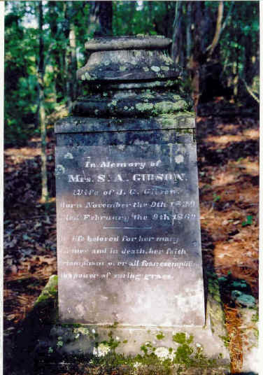 Sarah Ann Hartsfield was the daughter of Berry Hartsfield and Martha Jane Glenn (daughter of John Glenn and Mary Brooks). She married John Glenn Gibson on 3 May 1860. John Glenn Gibson was the son of Jonathon Gibson and Susan Ann Glenn (daughter of John Glenn and Mary Brooks). After Sarah's death, John Glenn Gibson married her sister, Mary Hartsfield. John and Mary Hartsfield Gibson are buried at the Clark Cemetery in Oglethorpe County.