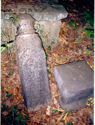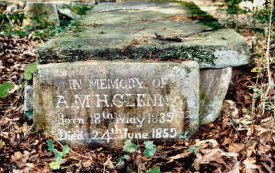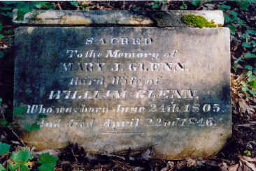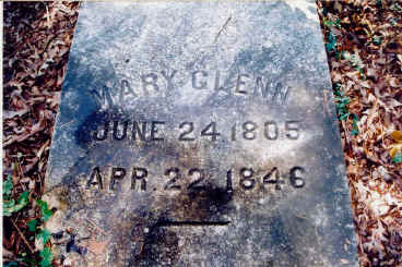 The box tomb beside John Glenn has collapsed and the inscription can no longer be seen. This is likely the grave of John's wife, Mary Brooks Glenn. Earlier surveys of the cemetery include the following inscription: