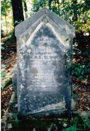 Clarinda Jane T. "Johnnie" Huff was the daughter of James R. Huff and Martha Stephens. She married Alexander Hamilton Smith Glenn on 27 May 1868. Alexander was the son of William Glenn and Mary Jane Black. After Johnnie's death, Alexander married Elizabeth Maddox. He is buried at the Eberhart/Maddox Cemetery in Oglethorpe County.