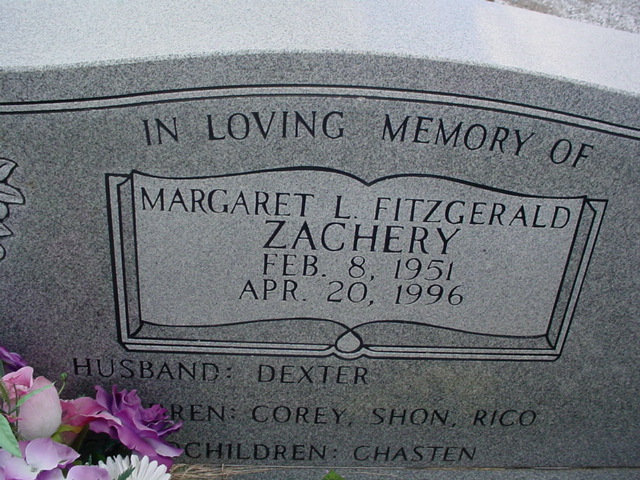 w/o Dexter Zachery; m/o Corey, Shon, Rico |