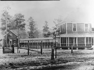 Dormitory for girls at Presbyterian Institute, left is the walkway to the dining hall. Blackshear, early 1900s |