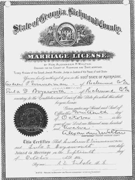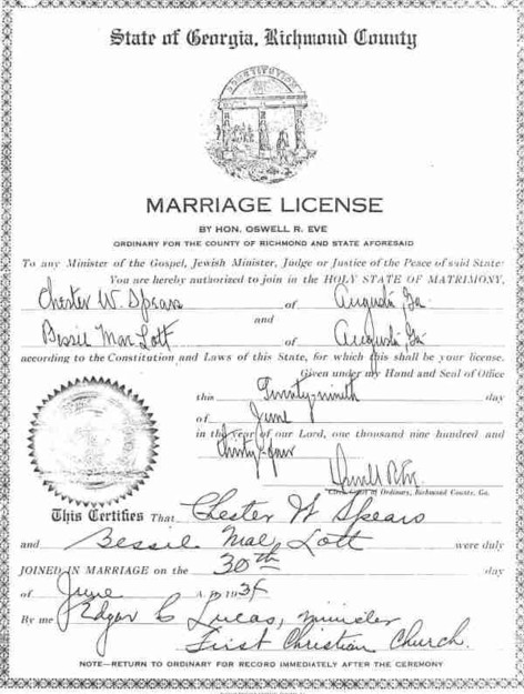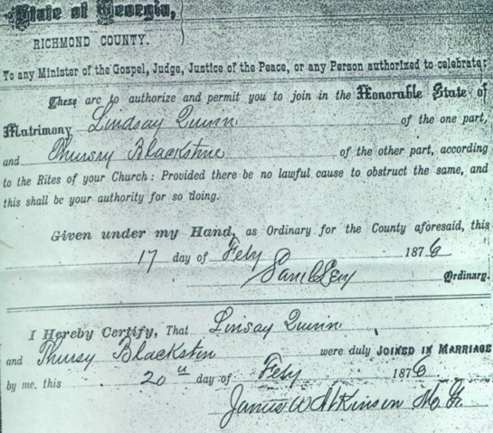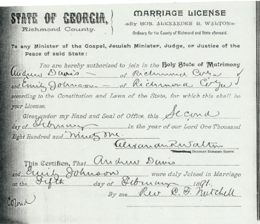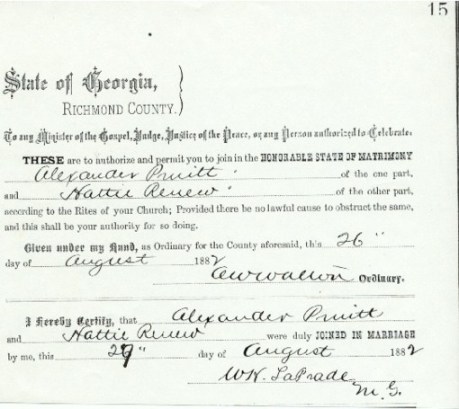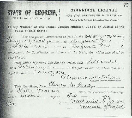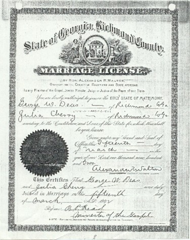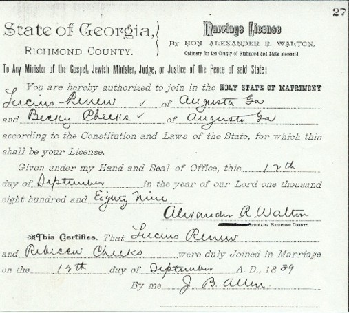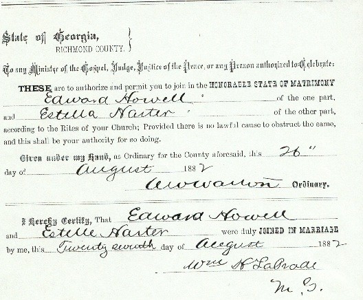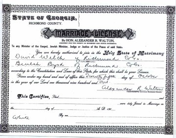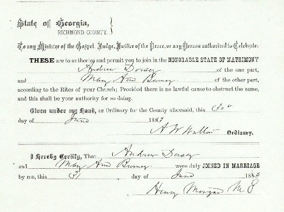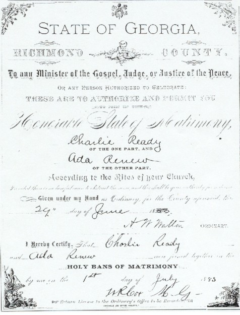 | CORBIN, William Timothy | Elizabeth Sophronia J. COPELAND | 06 JAN 1884 | Augusta, GA |
