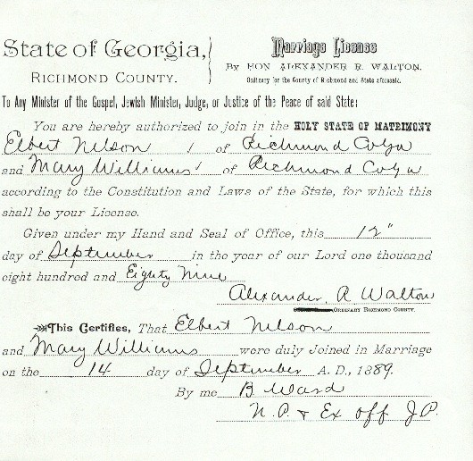 | WILLIAMS, Mary | Elbert NELSON | 14 SEP 1889 |