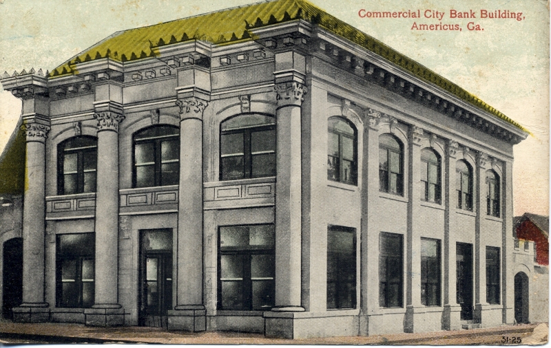 Commercial City Bank - Constructed by W.H.C. Wheatley in 1912, it was the Empire Bank of Americus from 1922 until 1950. From 1951 until 1991 it was First Federal Savings and Loan. Since then it has been the headquarters for the Middle Flint Regional Development Center.