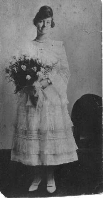 High school graduation picture of Etta Massouri Wood, the daughter of Francis N. Wood and Melissa Brantley. She was born Feb. 1, 1878 and died March 24, 1948. She married Joseph Sampson Smith on Dec. 20, 1896. They had 5 children together. |