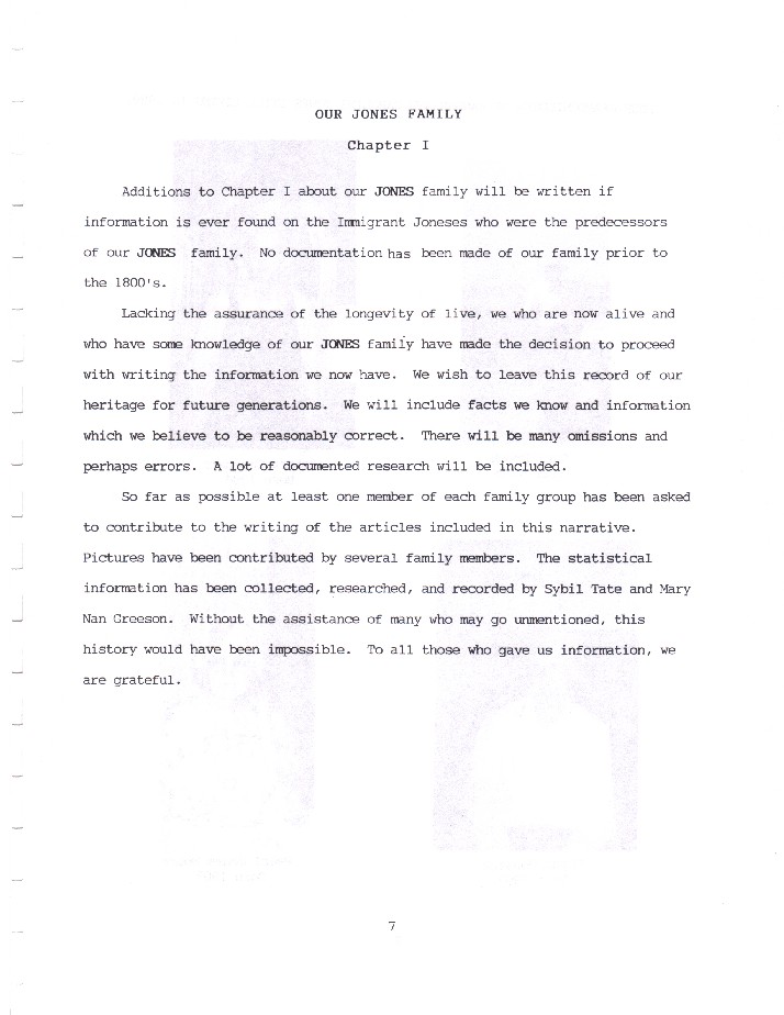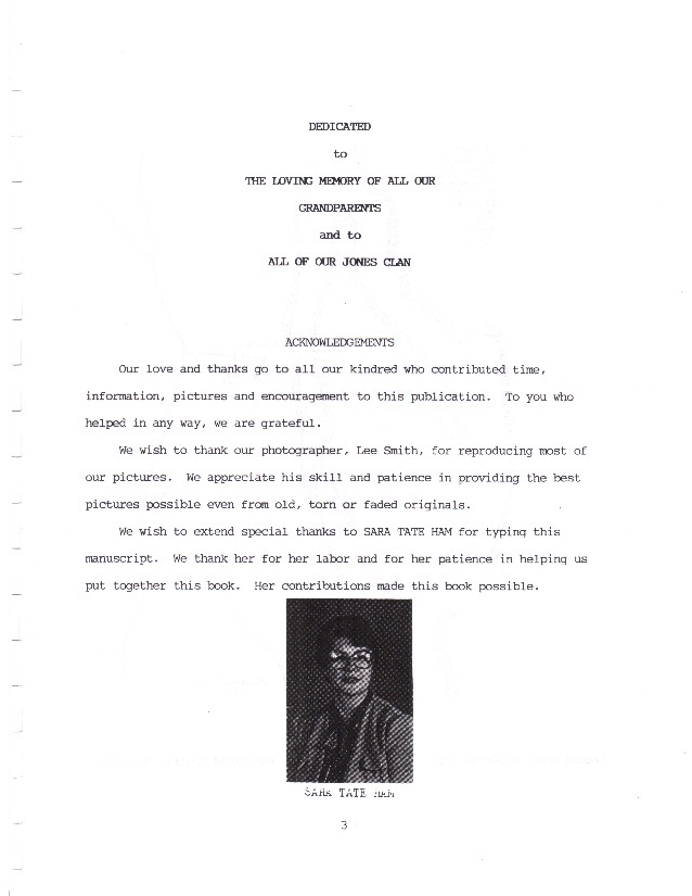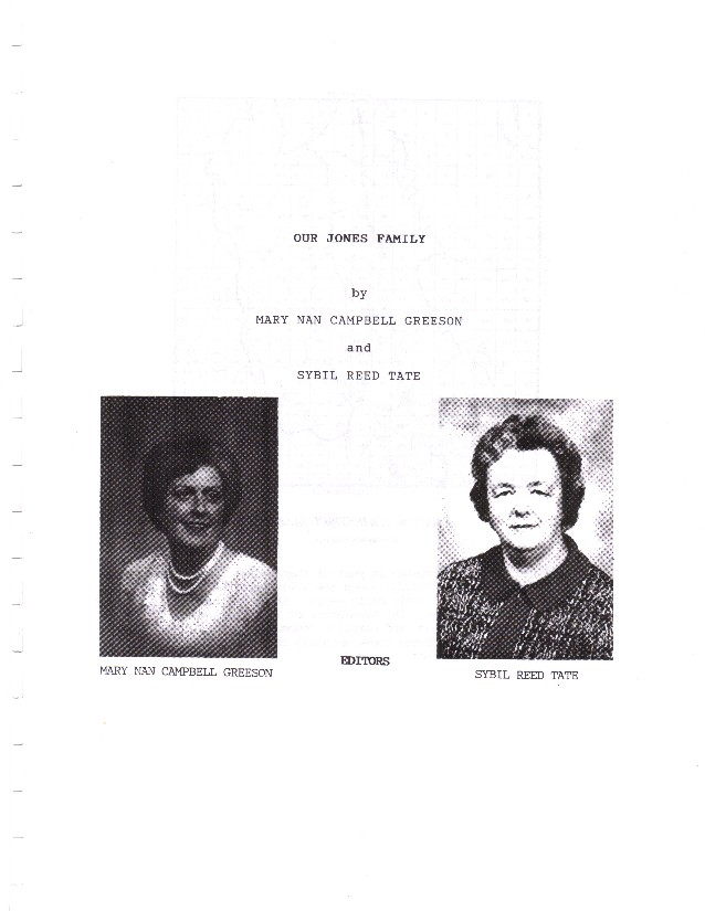 This section contains the History of the Jones Family in Whitfield County, Georgia. The author of this work is Sybil Reed Tate and all questions should be directed to her through her representative, Ethan Geer . Sybil has had recent personal health problems and therefore prefers that Ethan be the contact point for these questions and additional information. Sybil's work is greatly appreciated and the County Coordinator is extremely grateful for her allowing this great effort of hers to be posted to the web for all to use. Sybil has devoted many hours and a great deal of energy to this effort and it is duely recognized. Sybil's daughter, Sara Ham, has direct contact with Sybil and can be reached through Ethan Geer also.