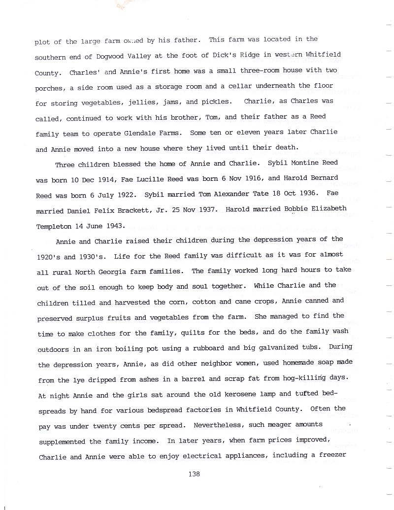 This section contains the History of the Jones Family of in Whitfield County, Georgia and parts of the Jones family history. The author of this work is Sybil Reed Tate and all questions should be directed to her through her representative, Ethan Geer . Sybil has had recent personal health problems and therefore prefers that Ethan be the contact point for these questions and additional information. Sybil's work is greatly appreciated and the County Coordinator is extremely grateful for her allowing this great effort of hers to be posted to the web for all to use. Sybil has devoted many hours and a great deal of energy to this effort and it is duely recognized. Sybil's daughter, Sara Ham, has direct contact with Sybil and can be reached through Ethan Geer also.