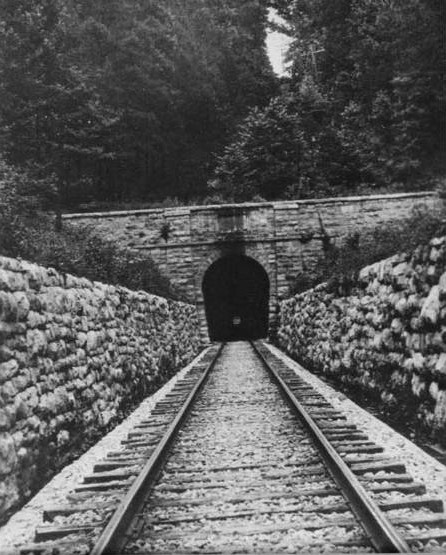 Plans to connect Chattanooga with Atlanta were begun in the 1830’s by the Western & Atlantic Railroad. Due to a depression and “great panic”, the construction was delayed by about 10 years. While waiting for the tunnel to be dug, passengers and freight were carried over Chetoogeta Mountain. The tunnel, dug through the base of Chetoogeta Mountain, was started April 15, 1848 at the west end. It was officially dedicated by steel maker Mark A Cooper on behalf of Western & Atlantic Railroad on October 31, 1849. The railroad tunnel was 1,477 feel long and was the first tunnel completed south of the Mason-Dixon line. The first Western & Atlantic train passed through the tunnel at Tunnel Hill on May 9, 1850. The town of Tunnel Hill was started to serve the builders of the tunnel as well as passengers that were carried over the mountain.